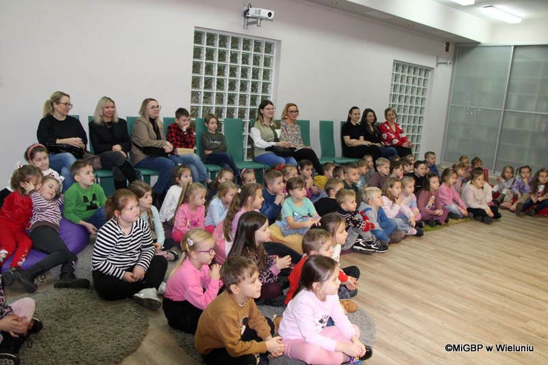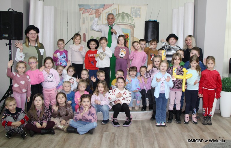 Miejska i Gminna Biblioteka Publiczna w Wieluniu 15 grudnia 2025 roku zamieniła się w miejsce pełne śmiechu, muzyki i dobrej zabawy. Wszystko za sprawą spektaklu „Piotrek Kolorowy Nos i jego sztuczki”, który przyciągnął najmłodszych mieszkańców miasta.